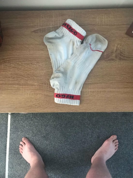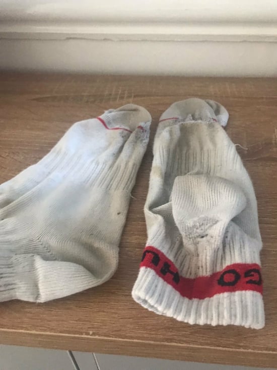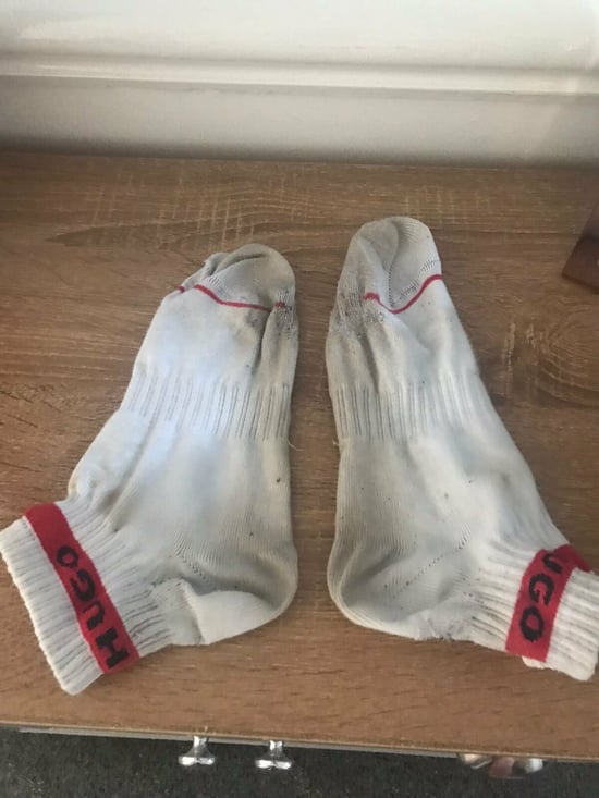 1 par de calcetines deportivos Hugo Boss. Los he usado durante más de 2 días. ¡Caminé 16 km! ¡Y hoy incluso hice jardinería con ellos! Tengo pies de talla 12