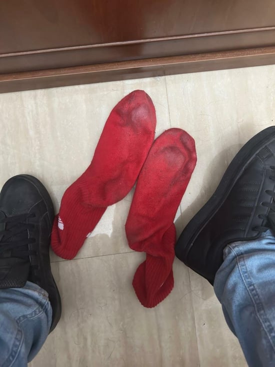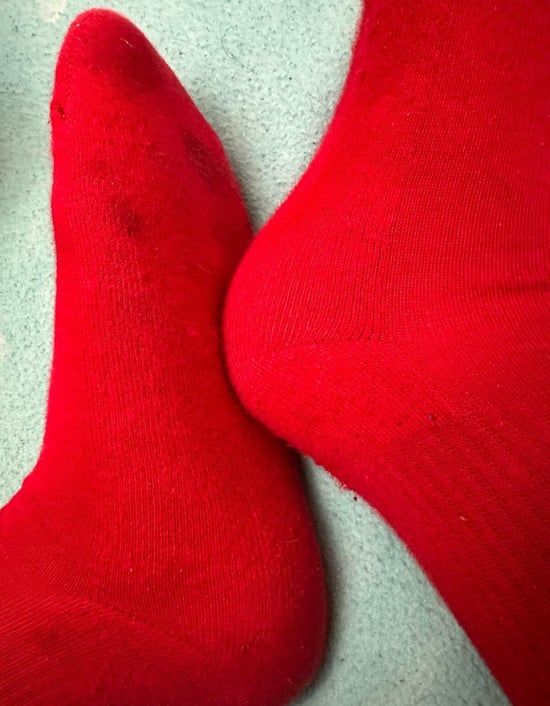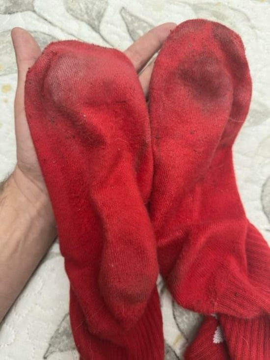 Mis calcetos rojos Adidas tras 5 días de uso han quedado como ves en las primeras fotos, el resto son del proceso, soy bastante activo y me muevo mucho, así que están muy currados y olorosos, si los quieres, escríbeme y concretamos, el envío correo de tu cuenta, a la dirección que me digas y con total discreción, pagos por paypal.