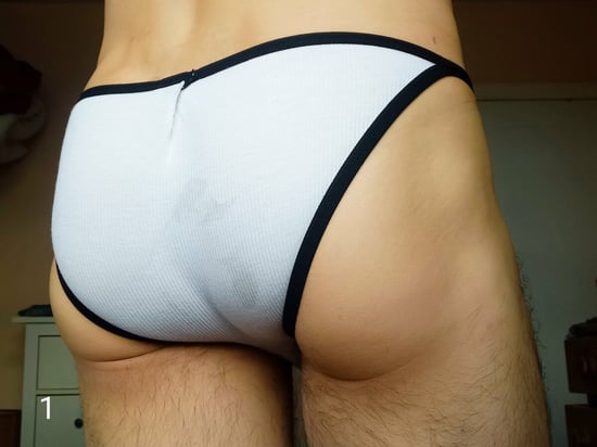 Braguita blanca modal GTOPX talla M, con manchas de semen delante y detrás (¡no se quitan!)
